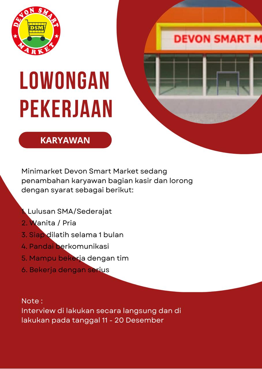 DIBUKA LOWONGAN KERJA UNTUK BAGIAN: KASIR (1 ORANG) PETUGAS LORONG (1 ORANG) SUPIR (1 ORANG) SEGERA ANTAR LAMARAN ANDA! INFORMASI LEBIH LANJUT HUBUNGI: ADMIN